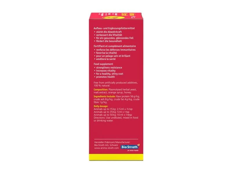 Anima-Strath Produkte sind 100% natürliche, vollwertige Aufbau- und Futterergänzungsmittel für alle Tiere. Sie können direkt verabreicht oder dem Basisfutter beigemischt werden. Die Aufbaumittel enthalten keine synthetischen Zusatzstoffe wie Konservierungsmittel, Geschmackstoffe und Farbstoffe. Die Produkte basieren auf der hochwertigen Strath-Kräuterhefe. Diese enthält viele natürliche Vitalstoffe wie 11 Vitamine, 19 Mineralstoffe/Spurenelemente, 20 Aminosäuren und 11 wichtige Aufbausubstanzen.