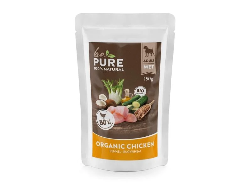 Das Nassfutter Adult mit Bio Huhn, Fenchel und Buchweizen eignet sich für ausgewachsene Hunde. Das Alleinfuttermittel hat einen hohen Fleischanteil und besteht aus 100% natürlichen Zutaten. Das Alleinfuttermittel ist für ernährungssensible Hunde geeignet.