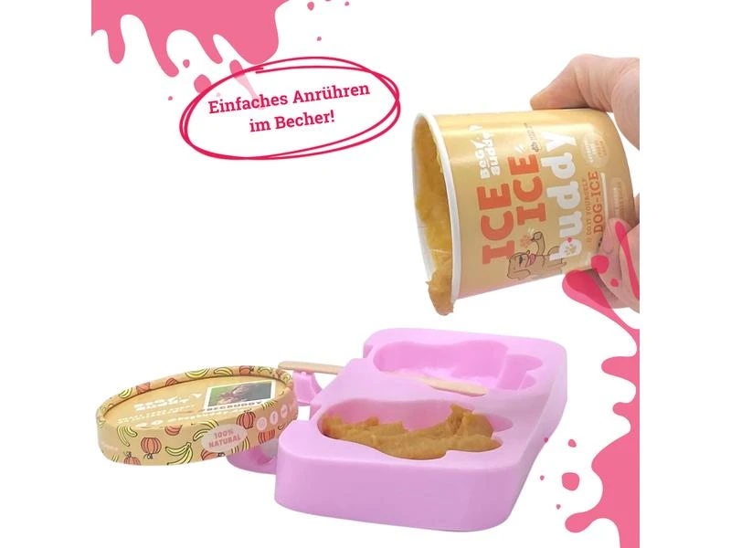 Hier kommt die perfekte Abkühlung für Ihren Hund. Natürliches Eispulver ohne zugesetzten Zucker! Einfach mit Wasser zubereiten und einfrieren.