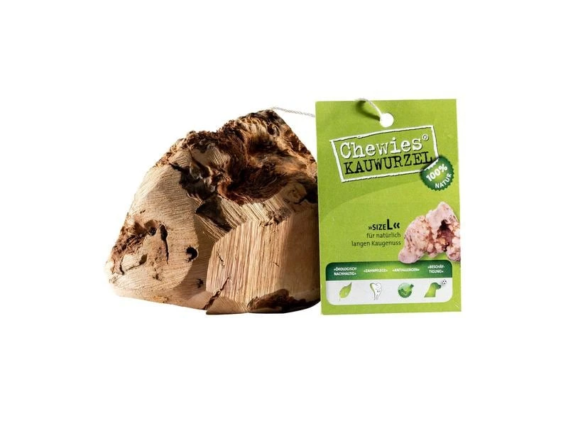 Vor allem Vierbeiner mit höherer Beisskraft sind mit den meisten Kauartikeln nicht glücklich. Zu weich und schnell weggekaut, aus Kunststoff mit all seinen Nachteilen oder zu kalorienreich bei sehr kurzer Kaudauer. Da kommen die Kauwurzeln ins Spiel. Die Knollen sind sehr robust und nahezu unverwüstlich. Sie sind eine artgerechte Beschäftigung zum Wohl und Glück aller Hunde und gleichzeitig ein nachhaltiges und 100% natürliches Kaumaterial. So entstand das Chewies Kauholz-Sortiment mit verschiedenen Hölzern, je nach Vorliebe und Beisskraft der Fellnasen.
