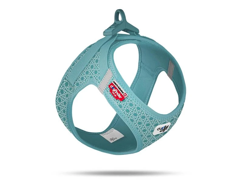 Die patentierte curli clasp-Schnalle thront ganz oben auf dem Geschirr und bietet dem Hundehalter maximalen Bedienkomfort. Mit einem Klick ist das Geschirr gesichert und lässt sich danach mit nur einer Hand an eine Leine legen. Auch sehr lebhafte Hunde, die auch beim Anleinen in Bewegung bleiben, lassen sich so einfacher für das Gassigehen vorbereiten. Sie ist aus Polyoxymethylen (POM) gefertigt, ist farblich auf das Geschirr abgestimmt und extrem robust. Die Schnalle hält Zuglasten bis zu 138 kg aus.