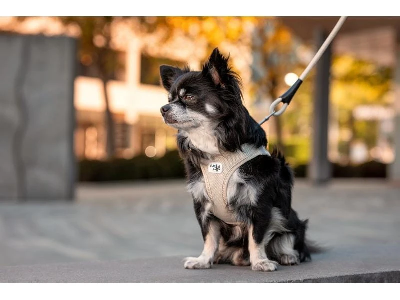 Die patentierte curli clasp-Schnalle thront ganz oben auf dem Geschirr und bietet dem Hundehalter maximalen Bedienkomfort. Mit einem Klick ist das Geschirr gesichert und lässt sich danach mit nur einer Hand an eine Leine legen. Auch sehr lebhafte Hunde, die auch beim Anleinen in Bewegung bleiben, lassen sich so einfacher für das Gassigehen vorbereiten. Sie ist aus Polyoxymethylen (POM) gefertigt, ist farblich auf das Geschirr abgestimmt und extrem robust. Die Schnalle hält Zuglasten bis zu 138 kg aus.