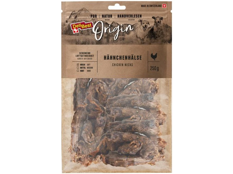 DeliBest Kausnack Origin Hähnchenhälse 250 g, Schweizer Fleisch