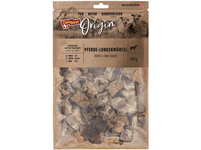 DeliBest Kausnack Origin Pferde-Lungenwürfel 100 g