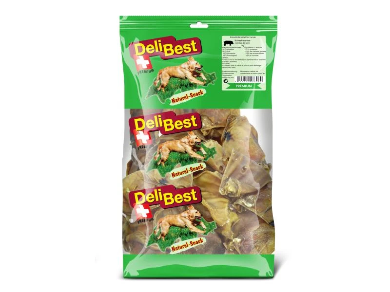 Die Schweineohren von DeliBest trainieren Gebiss und Kaumuskulatur und bieten einen artgerechten und geschmackvollen Kauspass der gleichzeitig die Zähne reinigt. Die Schweineohren werden besonders schonend getrocknet um Fetttropfen zu vermeiden, sie enthalten wertvolle Spurenelemente sowie kollagene Eiweisse die sehr wichtig für eine geschmeidige Haut und Fellstruktur sind. Eine leichte Glasur aus Malz und Mineralstoffen bringt eine höhere Fressakzeptanz mit sich und gibt den Snacks eine angenehm trockene Oberfläche.