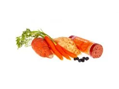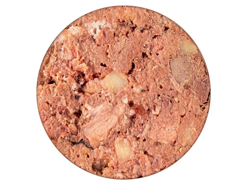 | Zusammensetzung | 80 % Rotwild (70 % Fleisch vom Rotwild, 15 % Herz vom Rotwild, 10 % Lunge vom Rotwild, 5 % Leber vom Rotwild), 10 % Kartoffeln, 5 % Pastinaken, 3 % Waldbeeren, 2 % Eierschalenpulver |