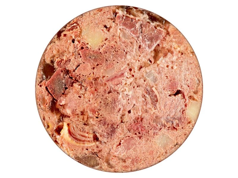| Zusammensetzung | 90 % Pferd (50 % Pferdefleisch, 20 % Pferdeherz, 15 % Pferdelunge, 5 % Pferdeleber), 8 % Kartoffeln, Distelöl, Eierschalenpulver |