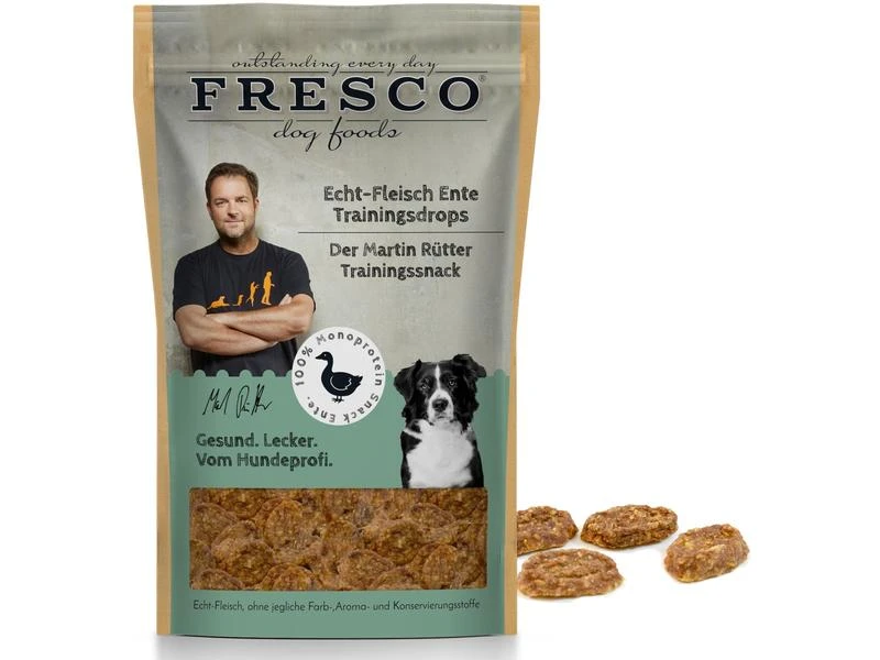 Egal welche FRESCO Trainingssnacks Sie kaufen, Sie können sicher sein, dass diese aus frischem Fleisch ohne Zusätze wie Mais, Weizen, Soja, Farbstoffe, Konservierungsstoffe, Fleischmehle oder anderen Füllstoffen hergestellt werden. FRESCO Trainingssnacks werden mit Liebe in Deutschland in eigener Produktion hergestellt. Das sorgfältig ausgewählte Entenfleisch wird lokal bezogen und ist zu 100% rückverfolgbar.