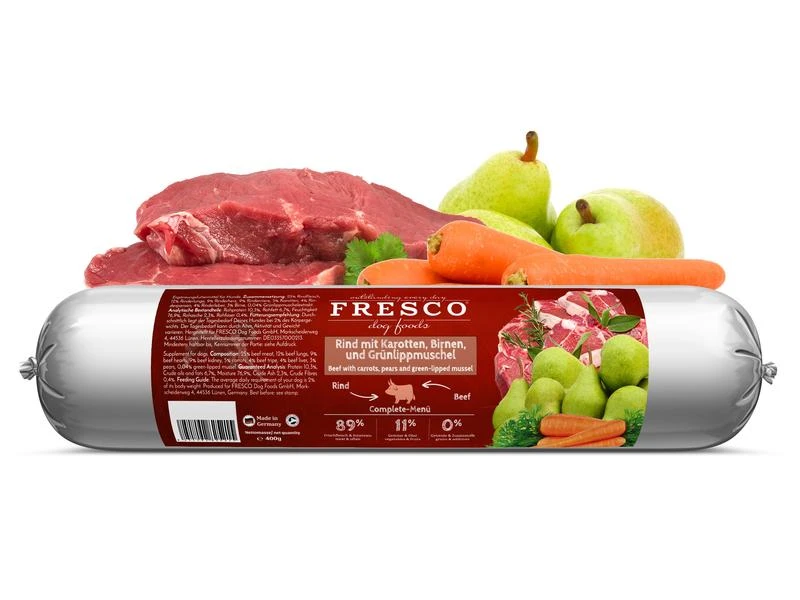 FRESCO Nassfutter BARF Rind mit Karotten, 400 g