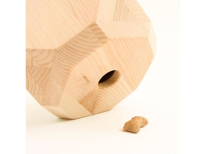 Nun gibt es endlich auch einen Futterwürfel aus Holz. Er rollt gut dank der abgerundeten Ecken. Das Tolle ist, dass ich auch eine gesamte Mahlzet so füttern kann. Für alle Hundegrössen geeignet.