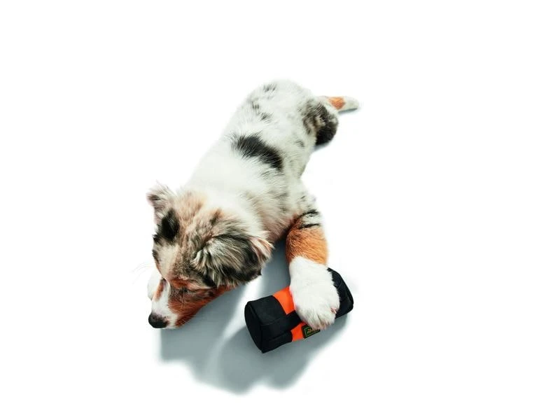 Auf spielerische Art und Weise Apportieren lernen – Ganz einfach mit dem Trainer Snack Dummy. Dank einer abwaschbaren Innenbeschichtung und einem leicht zu öffnenden Reissverschluss lässt sich der Dummy mit Belohnungssnacks oder Futter befüllen. Der Dummy wird geworfen und vom Hund apportiert. Das Besondere: der Hund wird direkt aus dem Dummy heraus belohnt, indem er nach dem Öffnen des Reissverschlusses direkt aus der Trainingstasche fressen darf. Somit lernt der Hund auf spielerische Weise das Apportieren und zugleich, dass er das Spielzeug nicht zerstören darf. Nur durch das Einwirken von Herrchen oder Frauchen gelangt er an die ersehnte Belohnung. Das robuste Material ist zahnfreundlich und der Dummy lässt sich durch die leichte Polsterung gut aufnehmen. Bei Verschmutzung kann der Dummy bei 30 °C in der Maschine gewaschen werden.