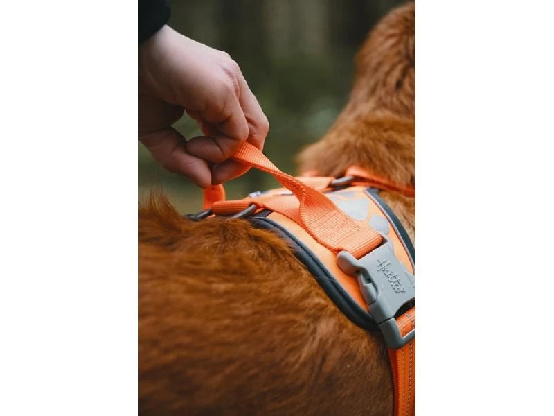 Am Rücken des Weekend Warrior Geschirrs befindet sich ein fester und sicherer Griff, mit dem Sie Ihren Hund besser kontrollieren können. Die Haltbarkeit der kritischen Punkte des Geschirrs ist durch spezielle Nähte und die durchgeführten Zugversuche nach DIN EN ISO 13934-1 Standard gewährleistet. Aufgedruckte 3M-Reflektoren und 3M-Reflektorpaspeln verbessern die Sichtbarkeit Ihres Hundes im Dunkeln.