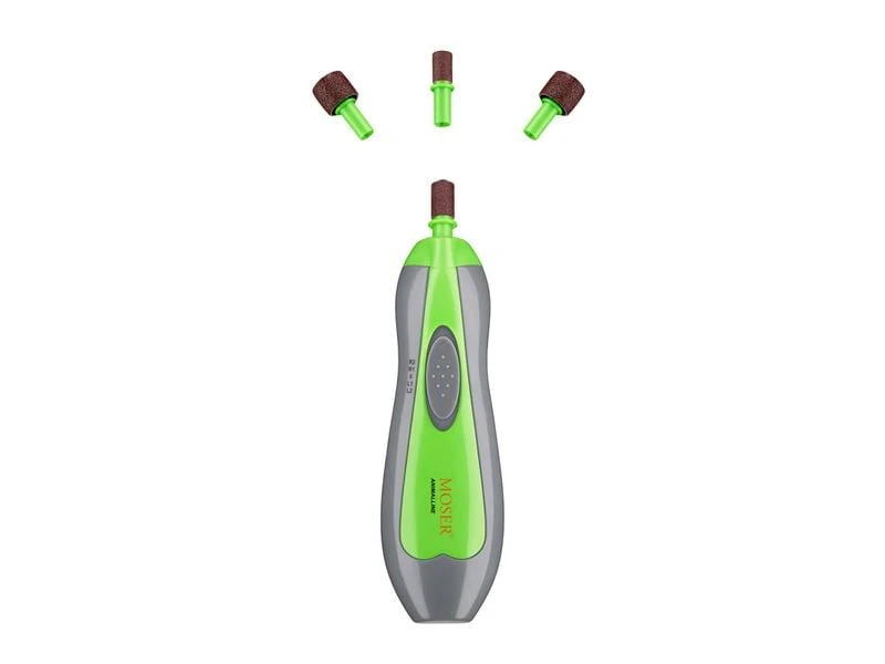 Mit diesem leisen, kabellosen Krallenschleifer von Moser können Sie Ihrem Hund oder Ihrer Katze stressfrei die Krallen kürzen. Mit einem praktischen Schiebeschalter lassen sich 2 Stufen vorwärts und 2 Stufen rückwärts einstellen. Der Krallenschleifer ist sowohl für Rechts- als auch für Linkshänder geeignet. Mit den unterschiedlichen Stufen lassen sich zudem auch dickere und härtere Krallen mit einem geringen Aufwand abschleifen. Die Auswechselbare Schleifköpfe sorgen für ein individuelleres Schleifen.