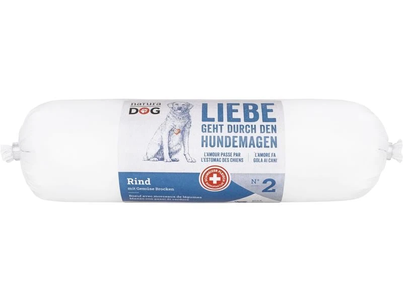 Bringen Sie Mensch, Tier und Natur ins Gleichgewicht und ernähren Sie Ihren Hund zu 100% mit Schweizer Fleisch. Es wurde ausschliesslich Fleisch von Schweizer Landwirtschaftsbetrieben und glutenfreies Getreide verwendet. Das Nassfutter wurde hitzebehandelt für eine ideale Lagerbedingung selbst