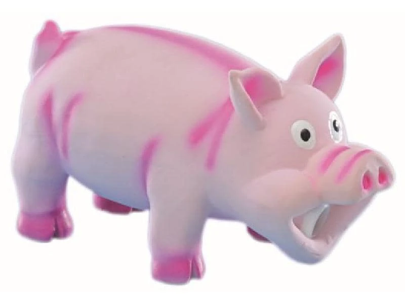 Schon beim Hinsehen vermitteln die lustigen Nobby Latex Figuren Spass am gemeinsamen Spiel. Ihr buntes Design regt die Phantasie an und die Figuren überraschen mit Quietschgeräuschen, wenn man sie drückt. Dies wird besonders von neugierigen, aktiven Hunden begeistert angenommen. Dieses Latex-Spielzeug ist in Form von Schweinen in verschiedenen Farben erhältlich. Sie sind 15 cm gross, gefüllt und mit einer Schweine-Stimme ausgestattet.