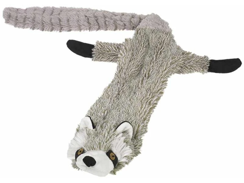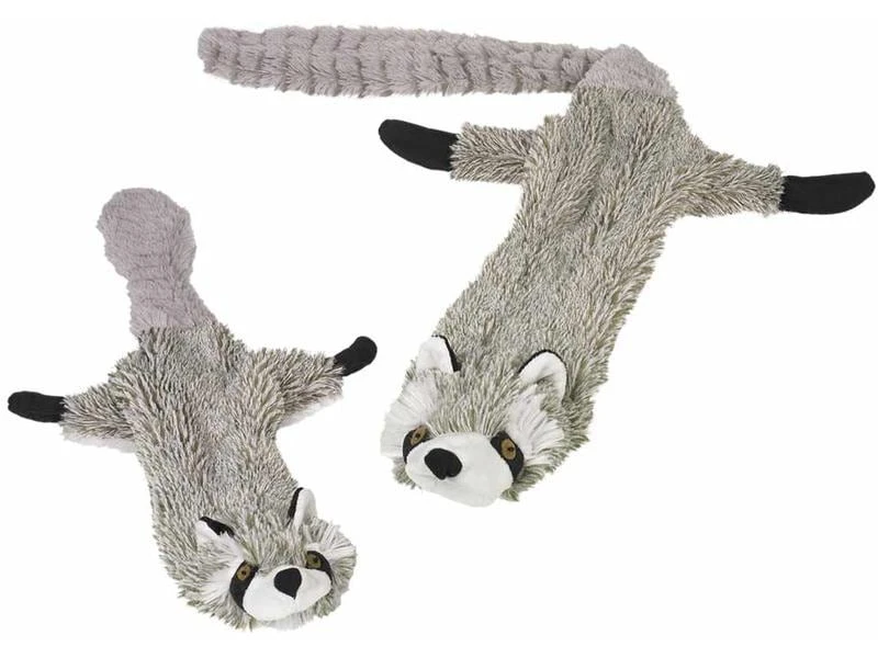 Kuscheltiere sind nicht nur geliebte Begleiter von Kindern, sondern werden auch von Hunden, besonders von Welpen, sehr gut angenommen. Dieser Waschbär besteht aus Softplüsch und ist mit einer Stimme ausgestattet.