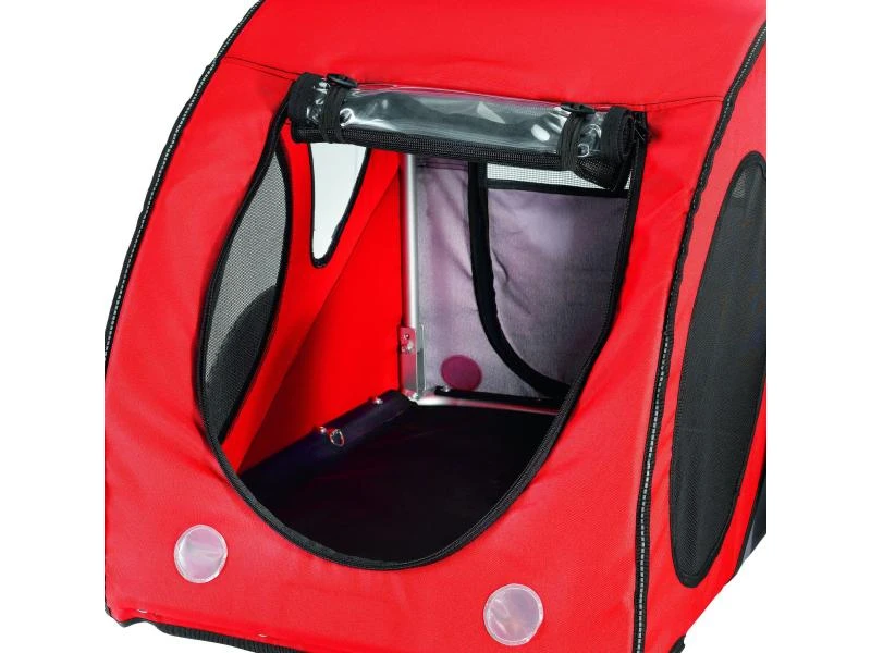 Möchten Sie eine etwas längere Tour mit Ihrem Hund unternehmen, ist er aber schon etwas älter oder krank und mag nicht mehr lange Strecken laufen? Suchen Sie eine Alternative zum Auto, wenn Sie bis an den Waldrand fahren müssen? Der Fahrrad-Anhänger von PetEgo eignet sich für diverse Ausflüge mit Ihrem Haustier. Er besitzt einen stabilen und robusten Stahlrahmen und lässt sich schnell und einfach am Velo befestigen. Öffnen Sie die Reissverschlüsse an Vorder- oder Rückseite der Transportbox, so kann Ihr Hund problemlos einsteigen. Wenn Sie abends unterwegs sind, sorgen Reflektoren für eine zusätzliche Sicherheit.