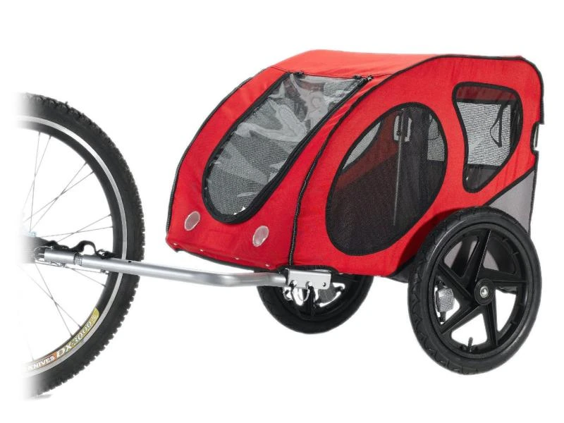 Möchten Sie eine etwas längere Tour mit Ihrem Hund unternehmen, ist er aber schon etwas älter oder krank und mag nicht mehr lange Strecken laufen? Suchen Sie eine Alternative zum Auto, wenn Sie bis an den Waldrand fahren müssen? Der Fahrrad-Anhänger von PetEgo eignet sich für diverse Ausflüge mit Ihrem Haustier. Er besitzt einen stabilen und robusten Stahlrahmen und lässt sich schnell und einfach am Velo befestigen. Öffnen Sie die Reissverschlüsse an Vorder- oder Rückseite der Transportbox, so kann Ihr Hund problemlos einsteigen. Wenn Sie abends unterwegs sind, sorgen Reflektoren für eine zusätzliche Sicherheit.