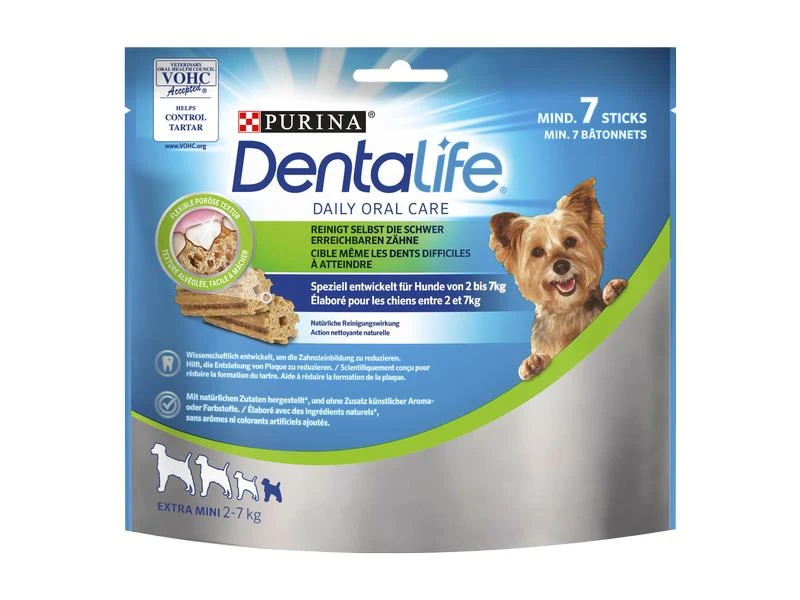 Ihr Hund hat spezielle gesundheitliche Bedürfnisse und die Erhaltung einer guten Mundgesundheit trägt positiv zu seinem gesamten Wohlbefinden bei. Deshalb haben die PURINA Experten Purina DentaLife entwickelt, einen Zahnpflege-Snack, bei dem wissenschaftlich erwiesen ist, dass er selbst die schwer erreichbaren hinteren Zähne reinigt, die am anfälligsten für die Bildung von Plaque und Zahnstein sind. Die Zahnpflege-Snacks sind für den täglichen Gebrauch geeignet. Eine tägliche Anwendung bedeutet eine intensivere Zahnpflege.