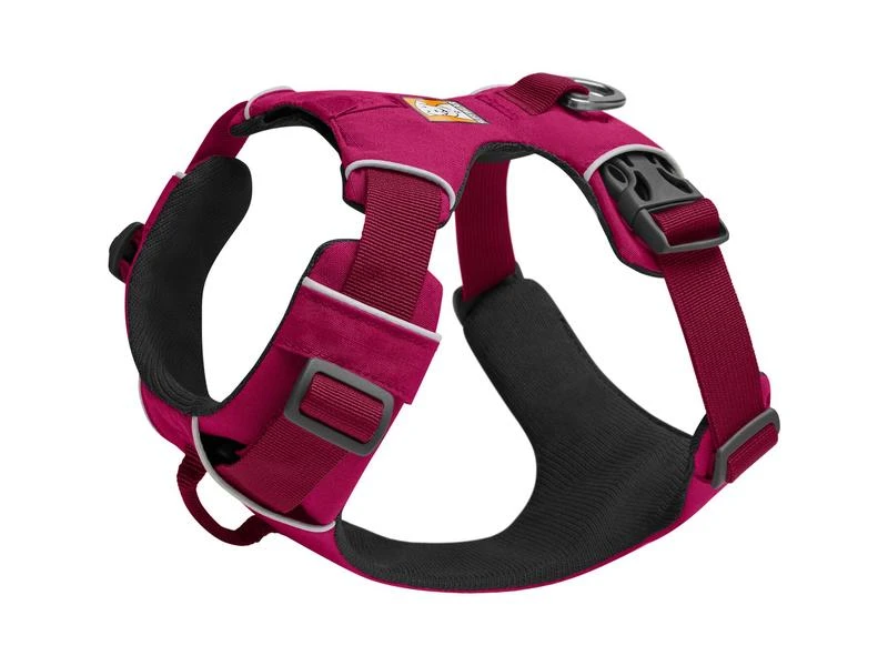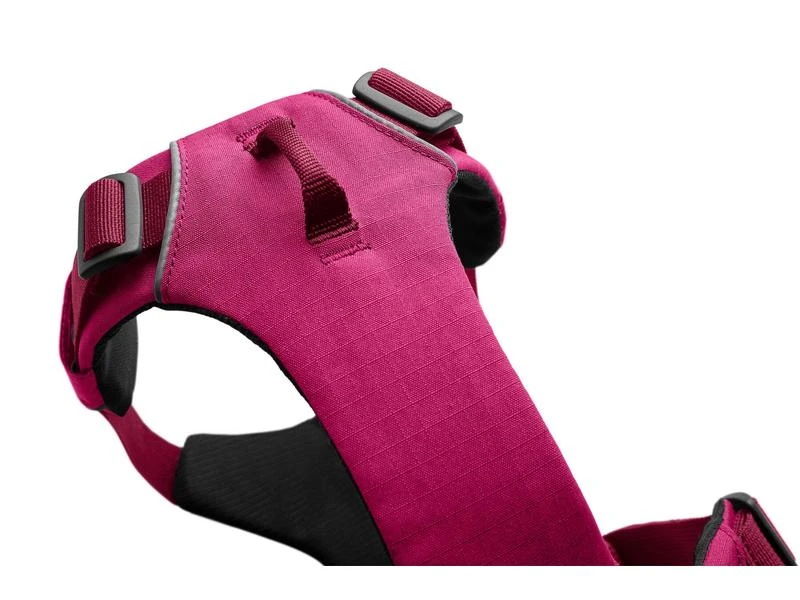 Gepolstertes Geschirr für die alltäglichen Abenteuer ist einfach anzulegen. Zwei Befestigungspunkte für die Leine: V-Ring auf dem Rücken des Hundes und verstärkte Gewebeschlaufe an der Brust für zusätzliche Kontrolle bei zweifachem Leinenanschluss.