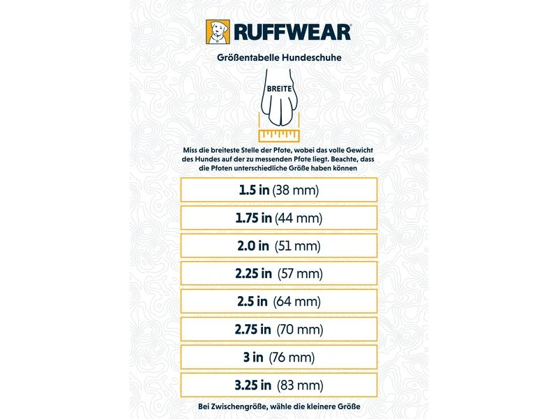 Leistungsstarker Pfotenschutz mit robuster und flexibler Vibram-Laufsohle für hervorragenden Halt auf jedem Gelände. Klettverschluss lässt sich für eine sichere Passform am schmalsten Teil der Hundpfote anpassen. Das atmungsaktive Mesh-Aussenmaterial sorgt für Belüftung und hält Schmutz und Ablagerungen fern.
