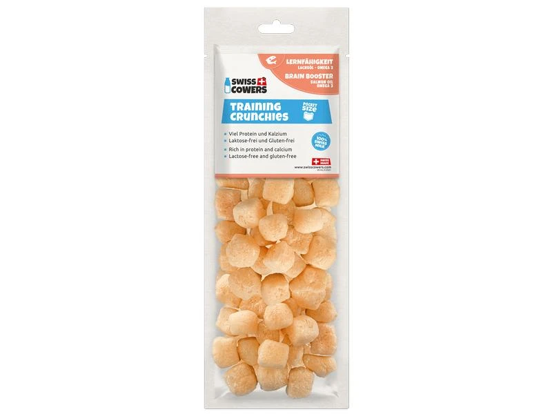 Herzhaft knusprige Käse Crunchies aus 100% Schweizer Milch mit viel Protein und Kalzium, verfeinert mit norwegischem Lachsöl. Der gesunde Snack fürs tägliche Training oder als Belohnung zwischendurch. Fütterungshinweis: ab 3 Monaten, nur unter Aufsicht verfüttern und genügend frisches Wasser bereitstellen.