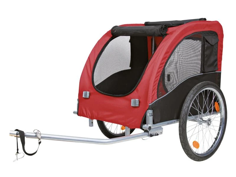 Herausnehmbare, gepolsterte Bodeneinlage, mit integrierter Kurzleine. Rostfreier Stahl, Polyester-Bezug, inklusive Anhängerkupplung.