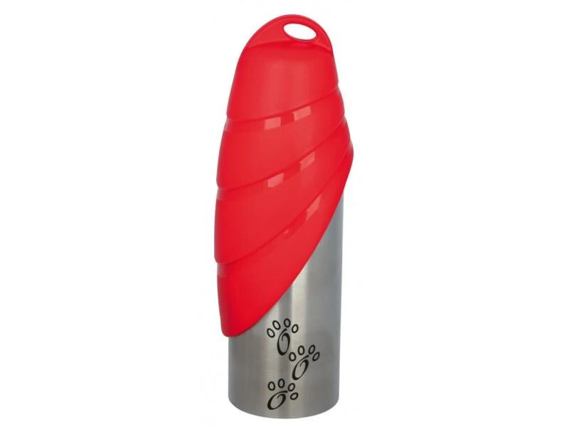 Wer mit Hunden unterwegs ist, weiss, dass die kleinen Energiebündel schnell Durst bekommen. Besonders im Sommer ist es gut, wenn man ihnen unterwegs den Durst löschen kann obwohl gerade keine saubere Wasserquelle in der Nähe ist. Die Wasserflasche aus Edelstahl verfügt über einen cleveren Deckel aus Kunststoff, der gleichzeitig ein Trinknapf ist. Die robuste Flasche fasst 300 ml und lässt sich zum Mittragen auch an einem Haken befestigen.