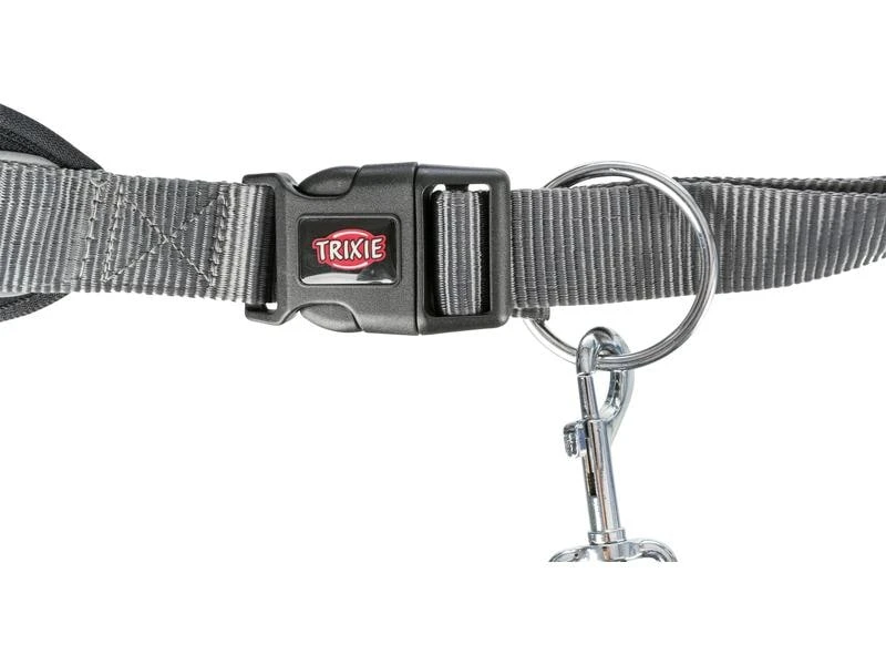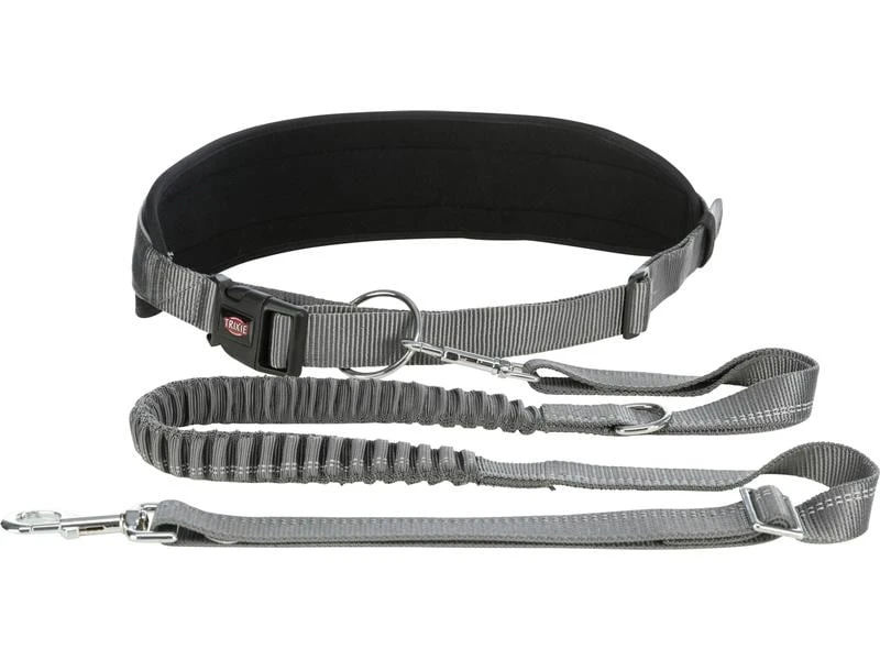 Der Bauchgurt mit Leine von Trixie bewährt sich beim Cani-Cross, Joggen oder Walken mit mittelgrossen bis grossen Hunden. Durch Zugentlastung ist er besonders belastbar, und mit seiner breiten Neopren-Polsterung bietet er angenehmen Tragekomfort. Ruckartiges Ziehen des Hundes wird durch Ruckdämpfer abgefedert. Die Leine verfügt über reflektierende Paspeln und Streifen und ist mit einer Handschlaufe ausgestattet und somit auch zum normalen Führen geeignet.