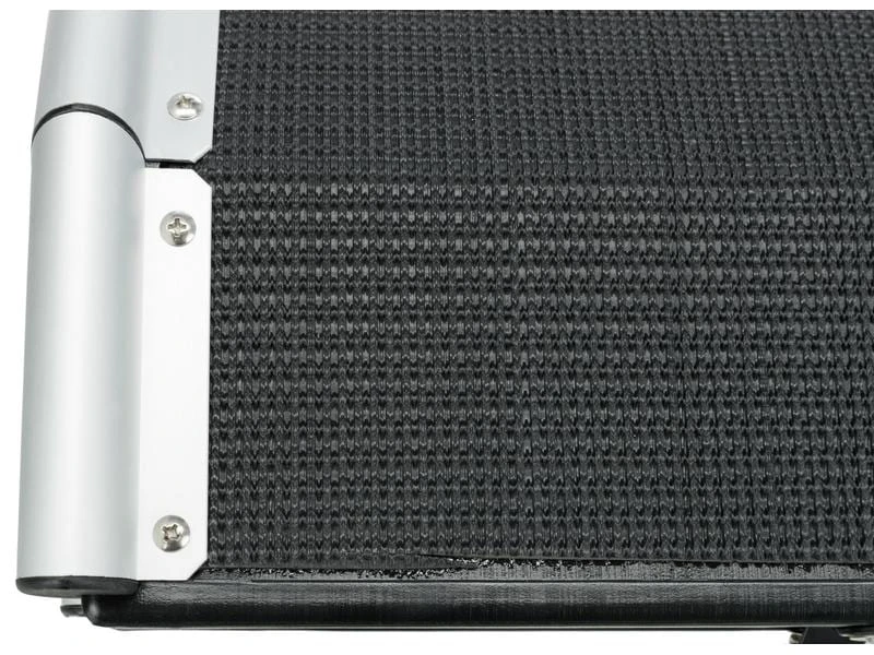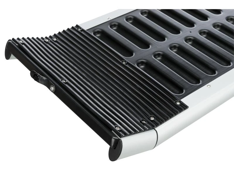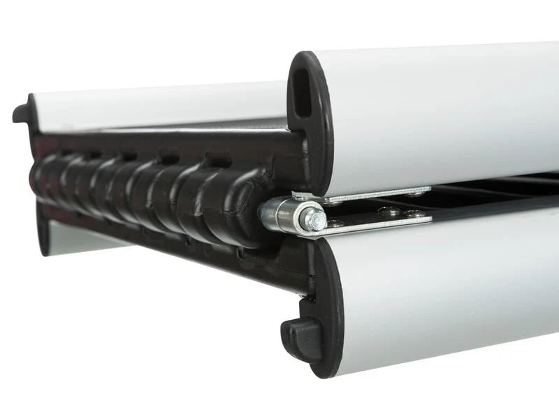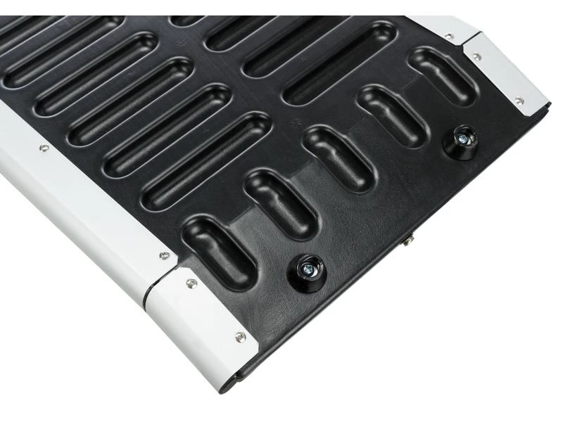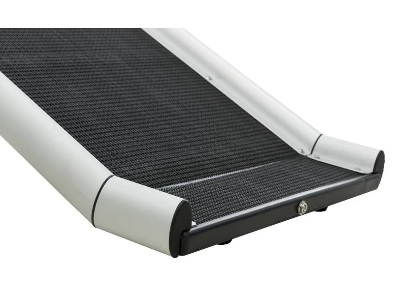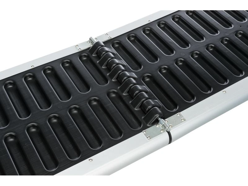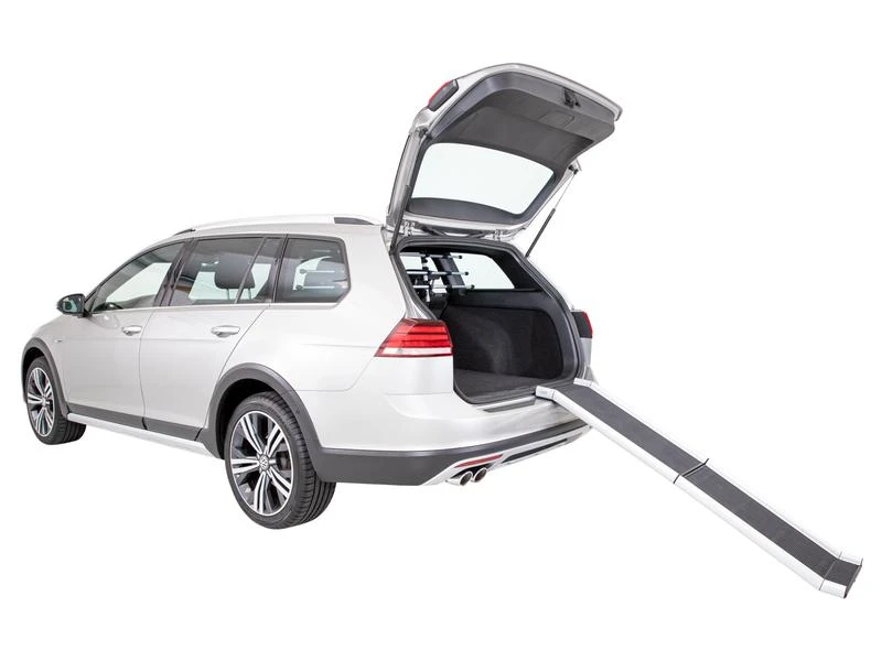 Die Lauffläche ist pfotenfreundlich, rutschfest und gummiert. Seitliche Sicherheitsschienen aus Aluminium garantieren einen sicheren Halt. Damit die Stossstange gut geschützt ist und keine Kratzer erhält, wurde die Rampe vorsorglich gummiert. Sie kann praktisch zusammengeklappt werden und ist einfach zu reinigen.