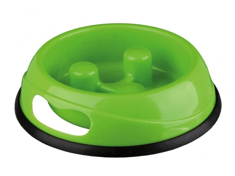 Neigt Ihr Hund zum Schlingen? Dann eignet sich dieser Napf ideal für ihn. Der Napf ist mit Wölbungen im Napfinnern ausgestattet, die Ihrem Hund das Schlingen verunmöglichen und er lernt dadurch, sein Futter langsam aufzunehmen. Der Napf sitzt dabei dank einem Gummiring fest an Ort und Stelle.