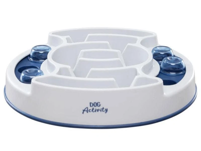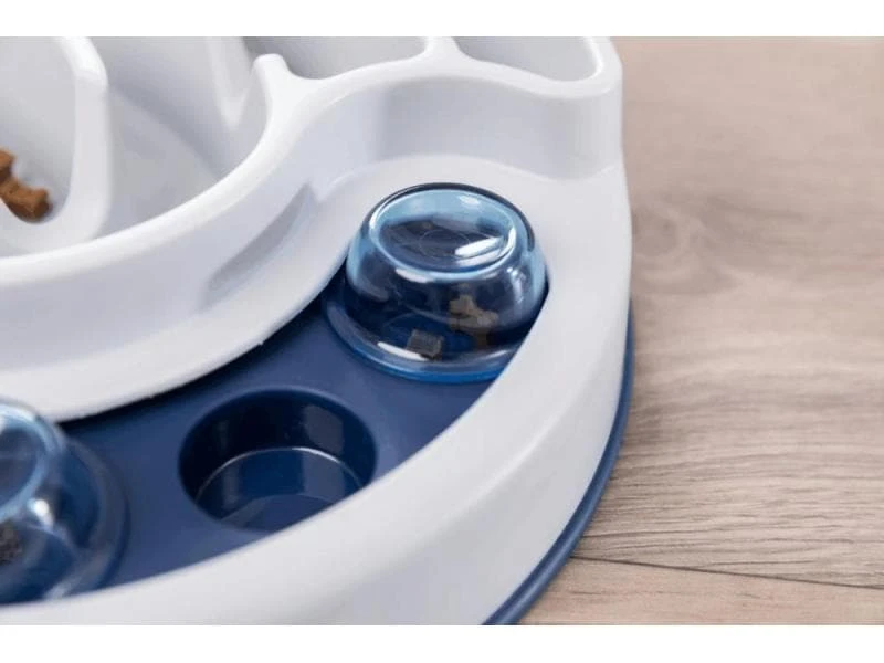 «Slide & Feed» ist ein Strategiespiel für Hunde oder Katzen, bei dem sich Ihr Haustier seine Belohnung mithilfe der Schnauze oder der Pfote erarbeitet. Befüllen Sie das Spiel mit Leckerlis oder dem gewohnten Nass- oder Trockenfutter. Das Spiel kann auch zur täglichen Futtergabe genutzt werden, wenn Ihr Haustier zum Schlingen neigt, denn durch die besondere Form des Spielzeugs wird das Schlingen des Futters vermieden. Hunde und auch Katzen werden mit diesem Intelligenzspiel zudem körperlich und geistig herausgefordert.