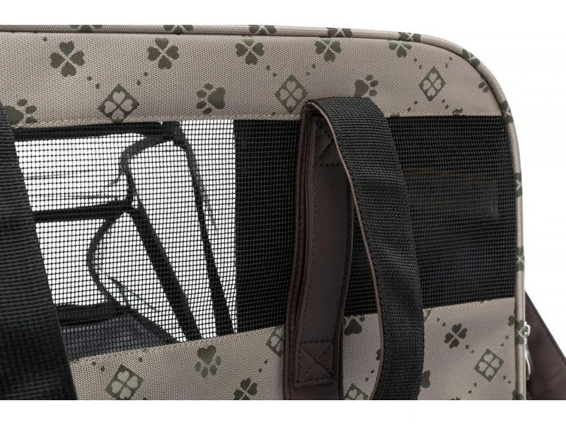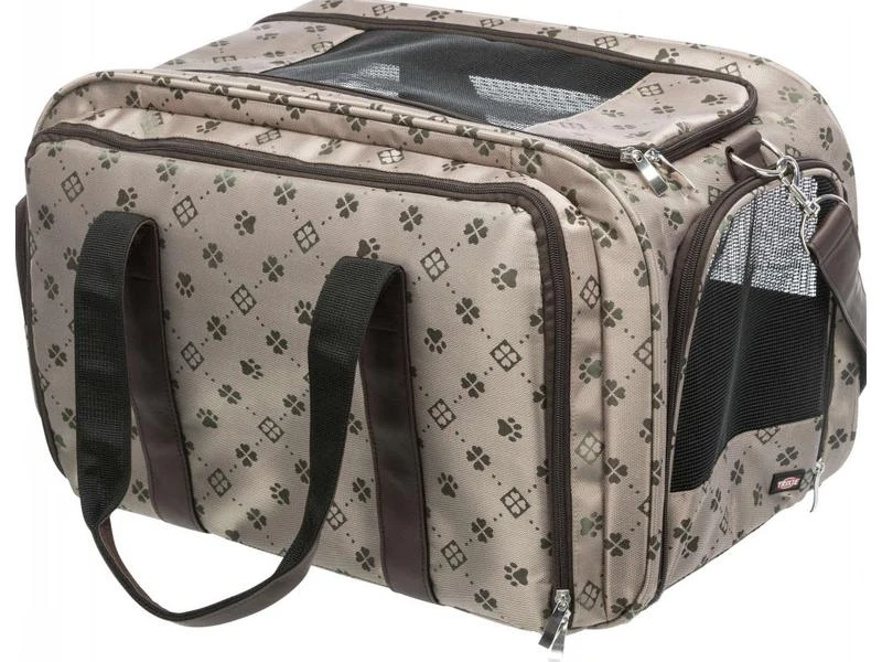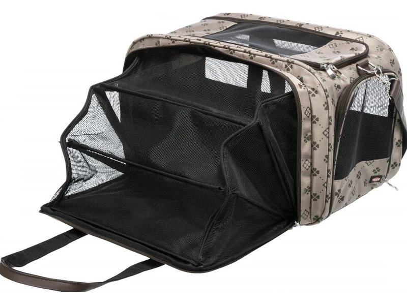 In der Tasche Maxima können Sie Ihren Vierbeiner sicher und bequem transportieren. Ausgestattet mit einer herausnehmbaren, gepolsterten Bodenplatte und Netz-Einsätzen, die für optimale Luftzufuhr sorgen, gestaltet die Tasche den Transport für Ihren Hund besonders angenehm. Der abnehmbare, stufenlos verstellbare Schulterriemen lässt sich individuell auf Ihre Bedürfnisse einstellen. Eine integrierte Kurzleine verhindert das Herausspringen Ihres Hundes. In einer seitlich angebrachten Tasche haben Sie Platz, einige Kleinigkeiten in greifbarer Nähe aufzubewahren. Dank ausklappbarer Seitentasche kann die Liegefläche verdoppelt werden.