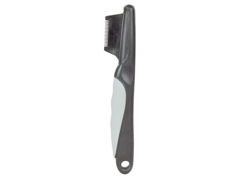 Mit diesem Trimm-Messer trimmen Sie den Kopf und die Ohren Ihres Vierbeiners. Das Werkzeug überzeugt mit einer Klinge aus rostfreiem Stahl und ermöglicht dank seinem Kunststoffgriff mit rutschfester Gummieinlage eine sichere und einfache Handhabung. Sie ist für Rechtshänder geeignet.