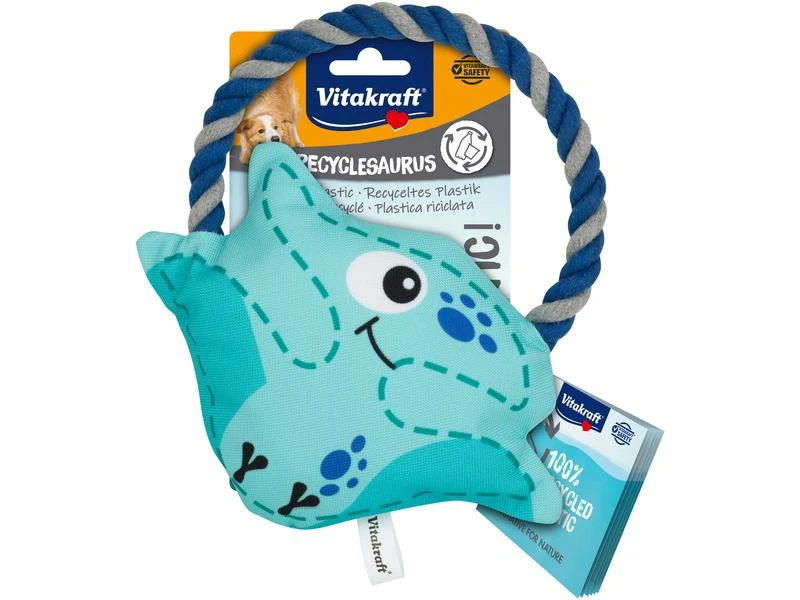 Als Dinosaurier unsere Erde bevölkerten, gab es noch keinen Plastikmüll. Der Stoff und die weiche Füllung der Vitakraft Recyclesaurus Toys bestehen aus 100% recyceltem PET. Aus Liebe zum Tier und zu unserem Planeten verarbeiten wir zudem natürliche, nachwachsende Rohstoffe. Die hochwertige Spielzeugserie macht Spass und schützt die Umwelt.