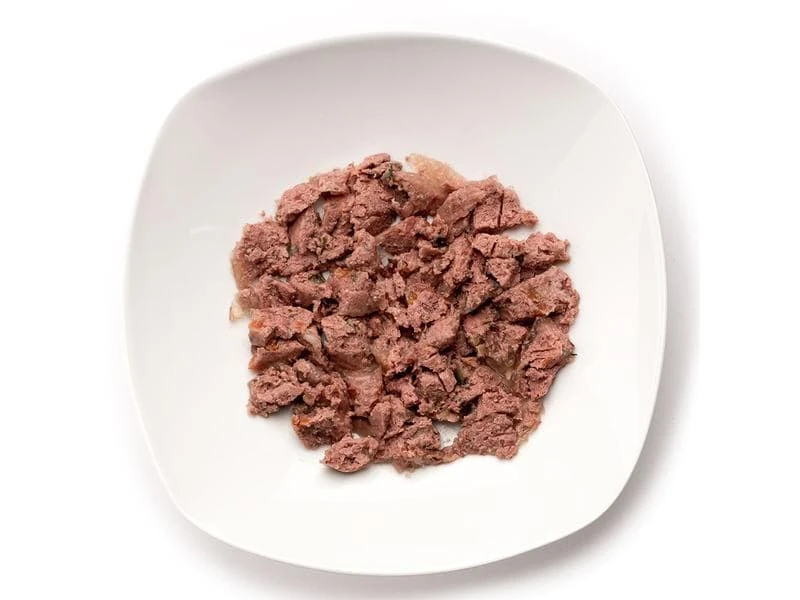 | Zusammensetzung | Huhn 62% (Herz, Fleisch,Leber, Mägen, Hälse), Brühe 27.5%, Karotten 4%, Zucchini 3%, Preiselbeeren 2%, Mineralstoffe 1%, Distelöl 0.3%, Kräutermischung 0.1% (Basilikum, Kamille, Löwenzahn, Petersilie, Rosmarin), Yucca-Extrakt 0.1% Ernährungsphysiologische Zusatzstoffe/kg: Vitamin D3 200 I.E., Zink als Zinksulfat / Monohydrat 15 mg, Mangan als Mangan-II-sulfat / Monohydrat 3 mg, Jod als Kalziumjodat, wasserfrei 0.75 mg |